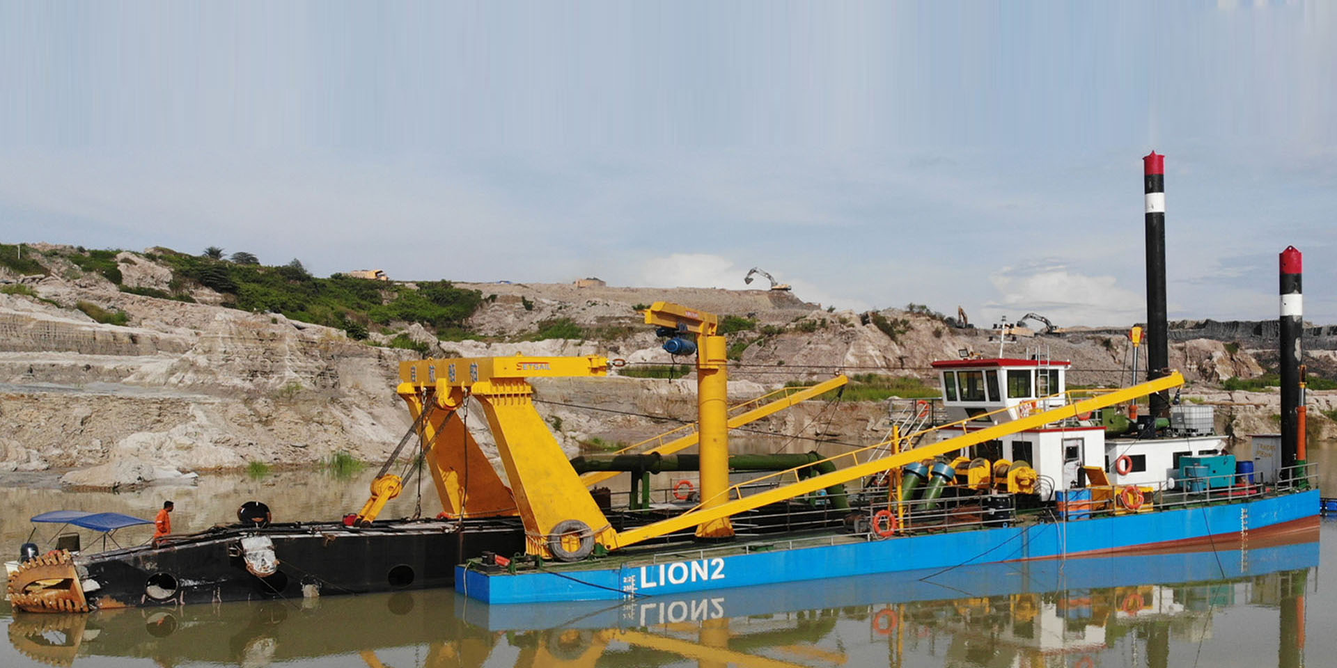 濰坊東洋海科重工建造的4000流量全電動水下泵絞吸船服務(wù)馬來西亞錫礦治理項目現(xiàn)場